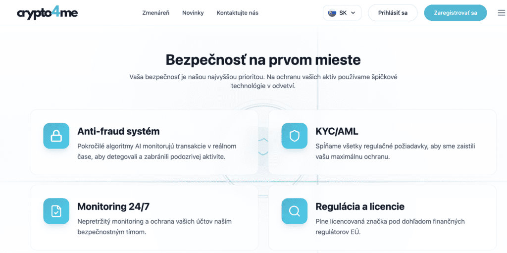 Práve do tohto prostredia vstupuje projekt crypto4me, ktorý sa snaží ponúknuť jednoduchý a regulovaný prístup ku kryptozmienám.